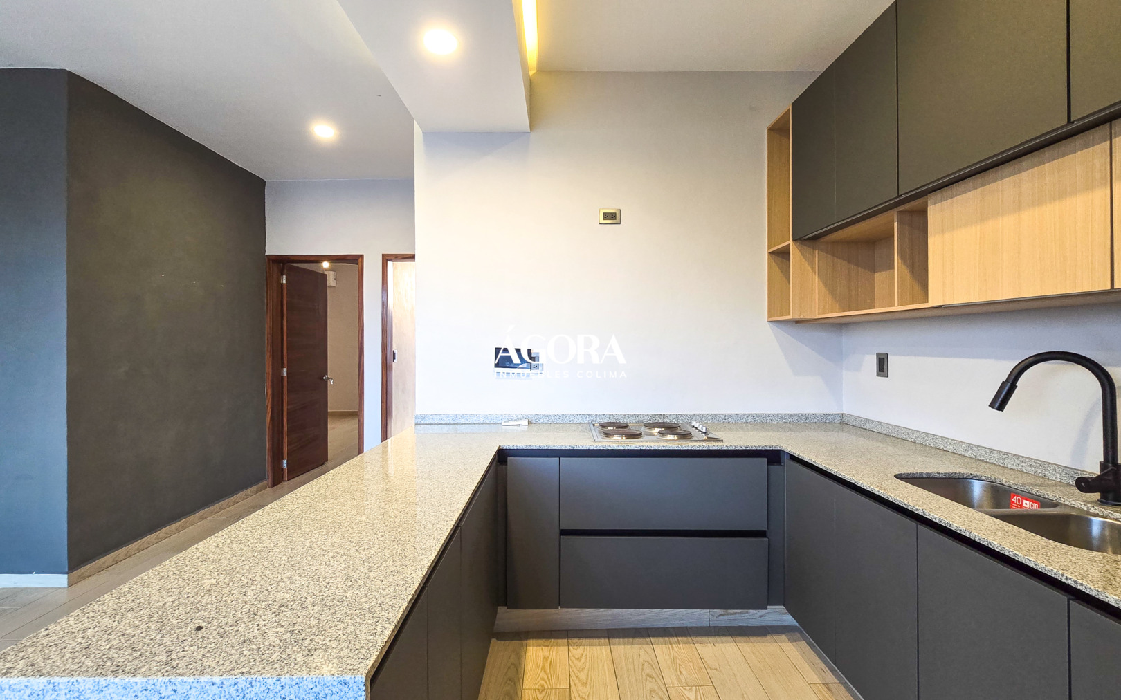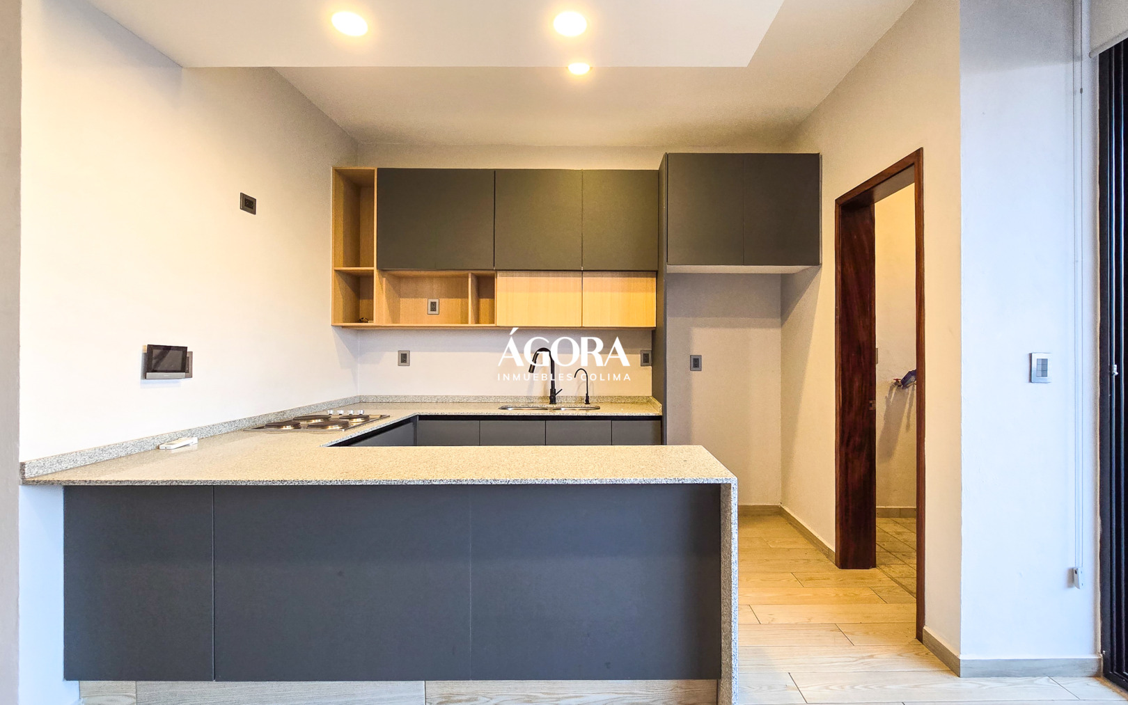 * Cocina integral equipada, con barra de granito y madera